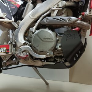 Engine and progression protection (Skid Plate) for Honda CRF 450 X 2005-2016 motorcycle made of 8mm durable and high-quality polymer. An excellent solution to protect your equipment from damage to the crankcase, pump, frame and progression link. Resistant to abrasion, oil and gasoline.