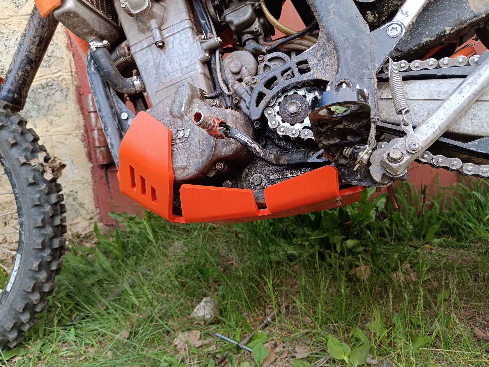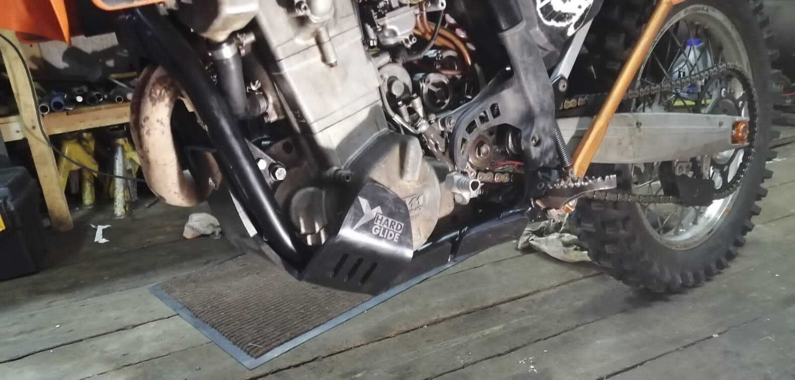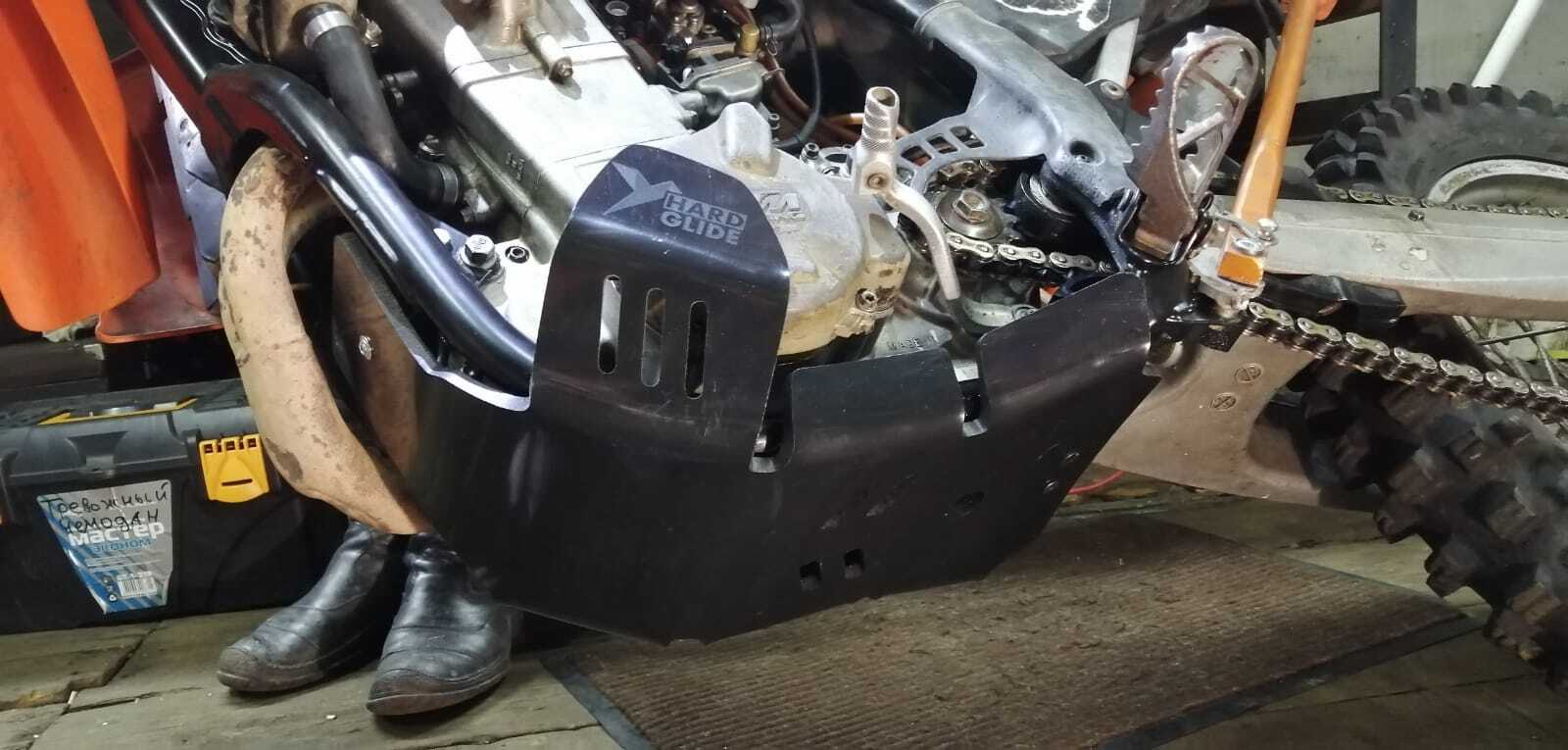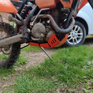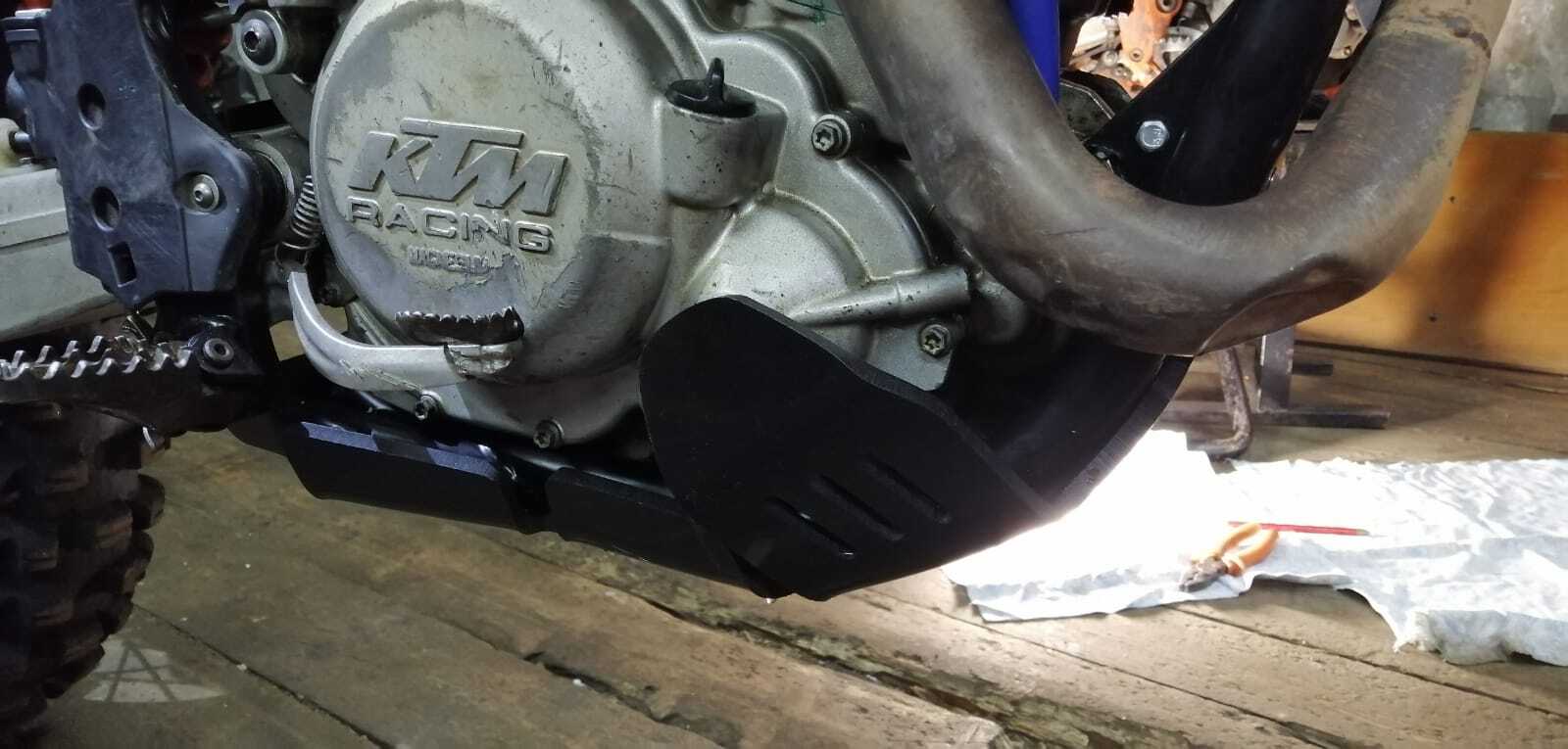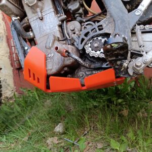 Engine protection (Skid Plate) for KTM EXCF 400 450 500 525, made of durable and high-quality 8mm polymer. An excellent solution to protect your bike from damage to the crankcase, water pump, and frame. Resistant to abrasion, oil, and gasoline.